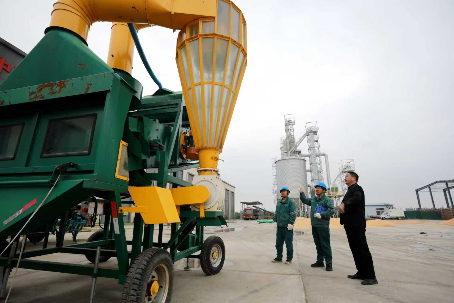 由拳新农业发展有限公司运营的党建联建粮食产业一体化中心项目占地30亩,粮食中转库建筑面积达3157.66平方米,承担着项目区万亩良田粮食的收购、储存重任,设备烘干塔每日处理能力高达400吨,是保障粮食安全的关键。