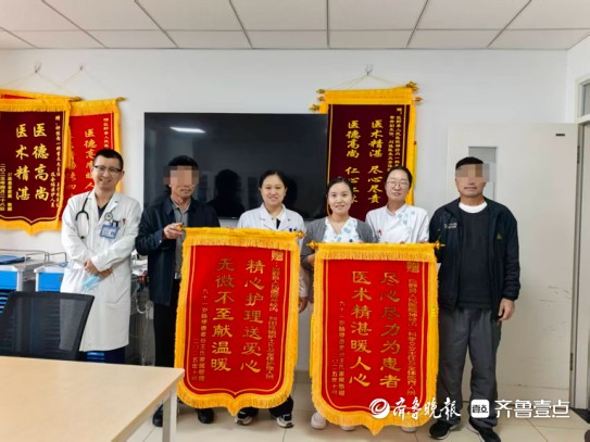经过系统性的治疗、康复与护理,这位91岁的高龄患者恢复情况远超预期。术后一周,患者神志清楚,偏瘫的肢体基本恢复正常,仅留有轻微言语不清,这一结果意味着患者的生活质量得到了极大地提高,减轻了家庭的经济负担,患者家属对于治疗效果极为满意,为表达深深的感激之情,特向神经内一科医疗及护理团队赠送了两面锦旗。