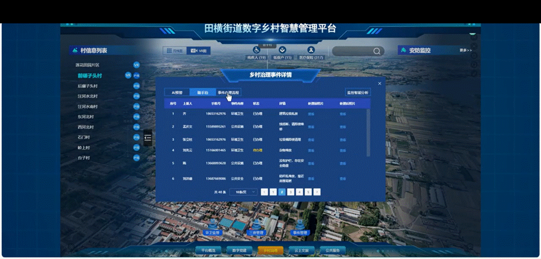 平台以“全域感知”筑牢乡村管理基础,在各村出入口、田间地头、水利设施等区域部署高清智能摄像头、土壤湿度传感器、水位监测设备等物联终端,不仅能精准捕捉人员车辆动态、农业生产环境数据,还可智能识别火灾隐患、非法占用耕地等异常情况,让乡村管理从“被动应对”转向“主动预防”,目前全镇物联设备在线率稳定在98%以上,数据可用性达99.9%。