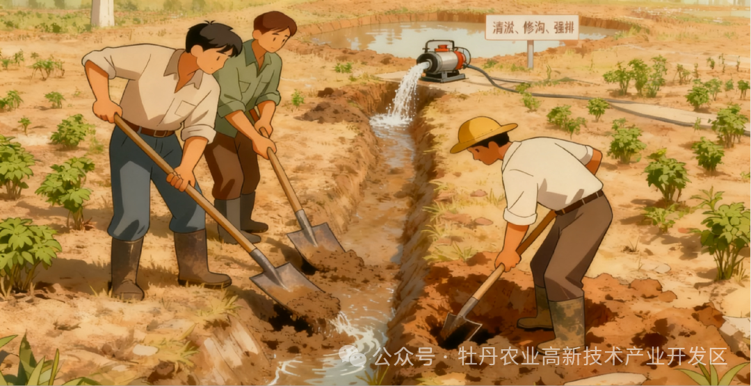 必要时可增设临时排水口或启用抽水设备,对低洼地块实施强排。