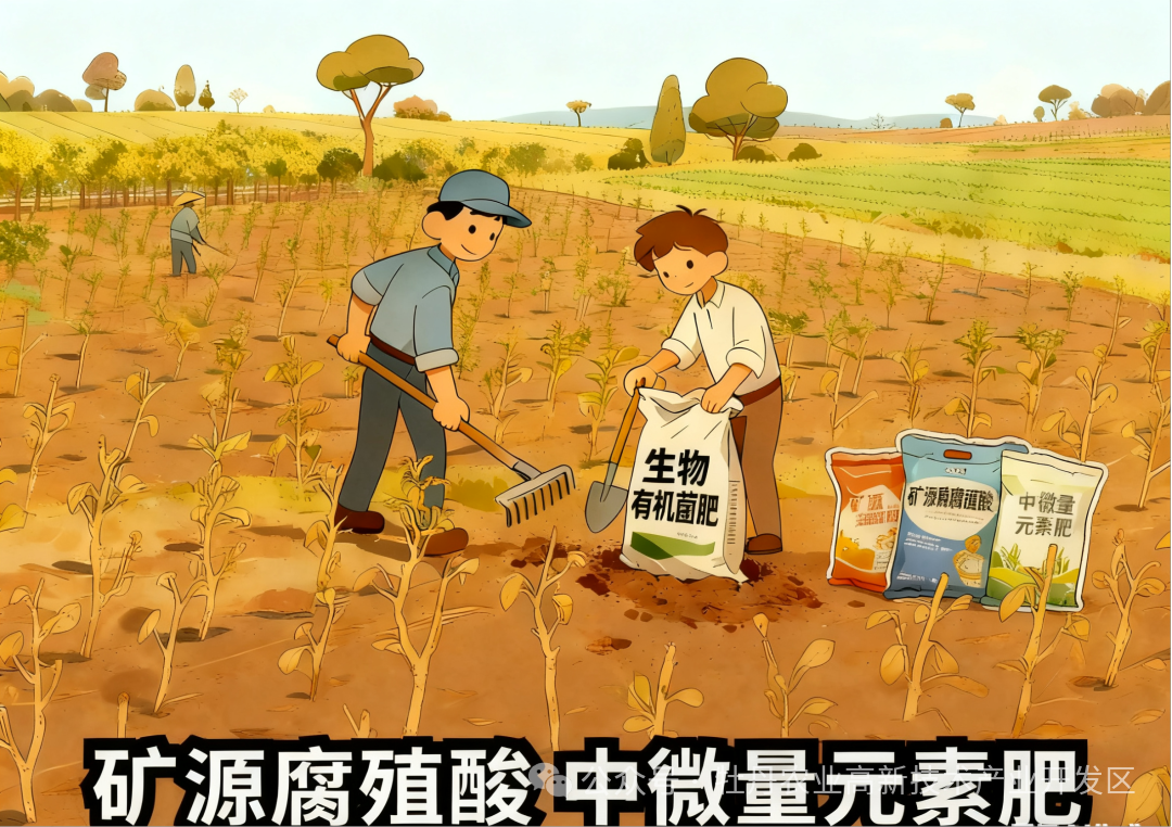 天气好转、苗木恢复生长后,结合中耕作业追施生物有机菌肥或矿源腐殖酸,同时补充中微量元素肥。