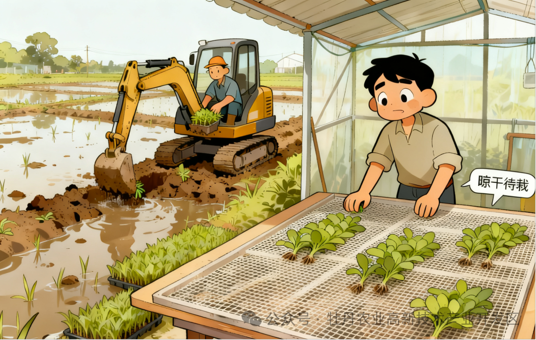 若无法排水,及时将种苗挖出,放置于通风阴凉处,待土壤条件适宜后重新移栽。