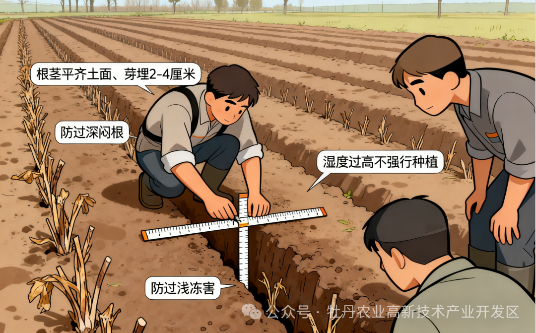 种植时控制好深度,确保根茎与土面平齐或稍低,芽体埋于土下2-4厘米,既防止过深闷根,也避免过浅受冻。