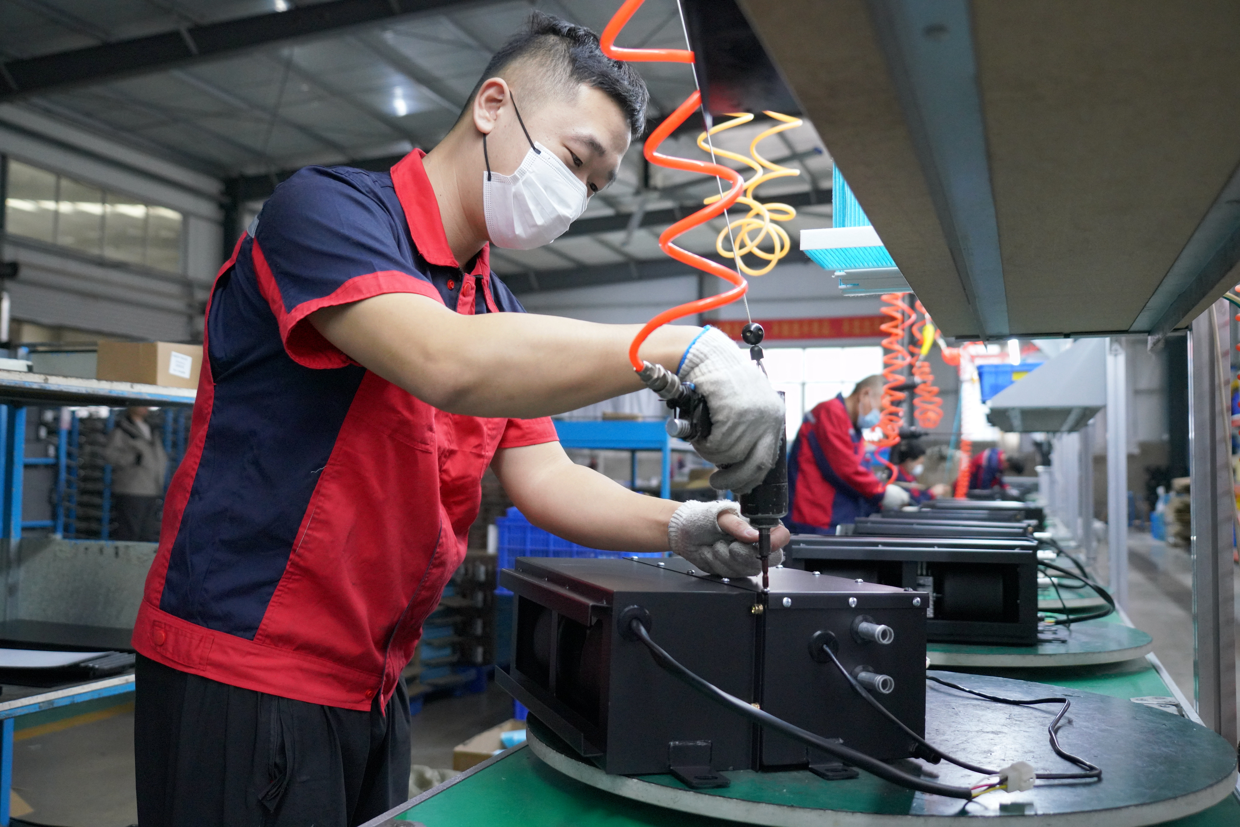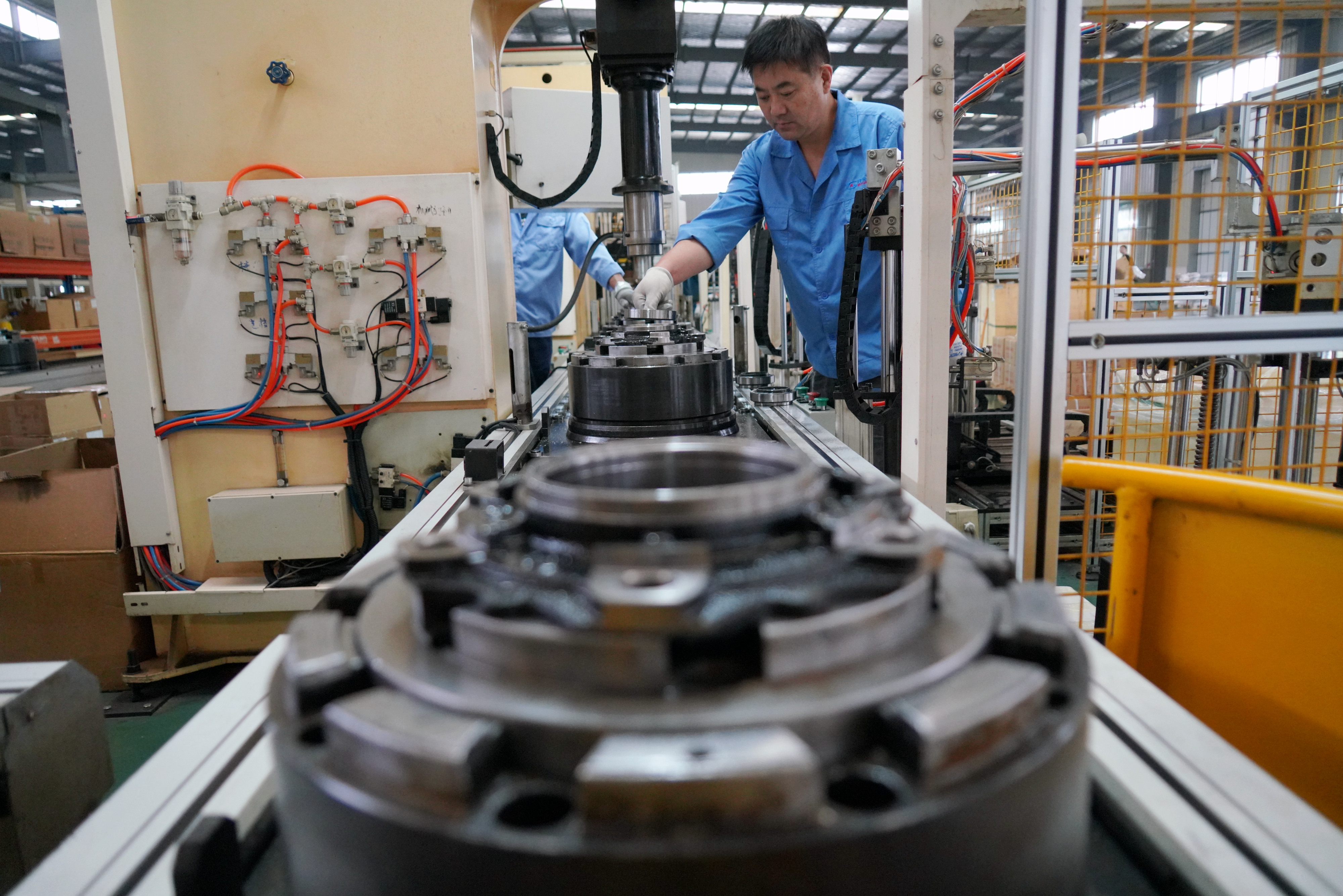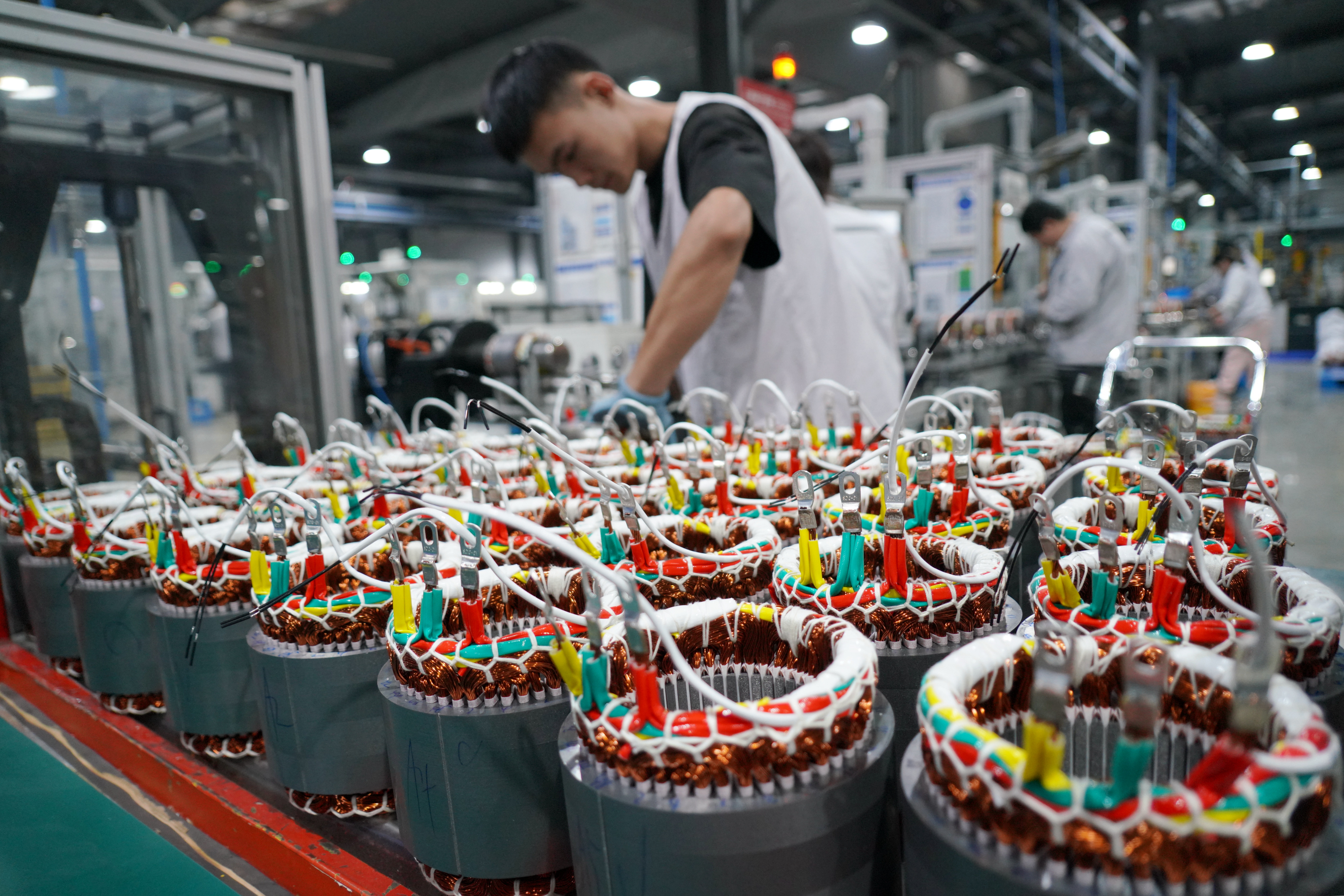 (10月17日,工人在山东双林新能源科技有限公司对生产的电机进行抽验。)