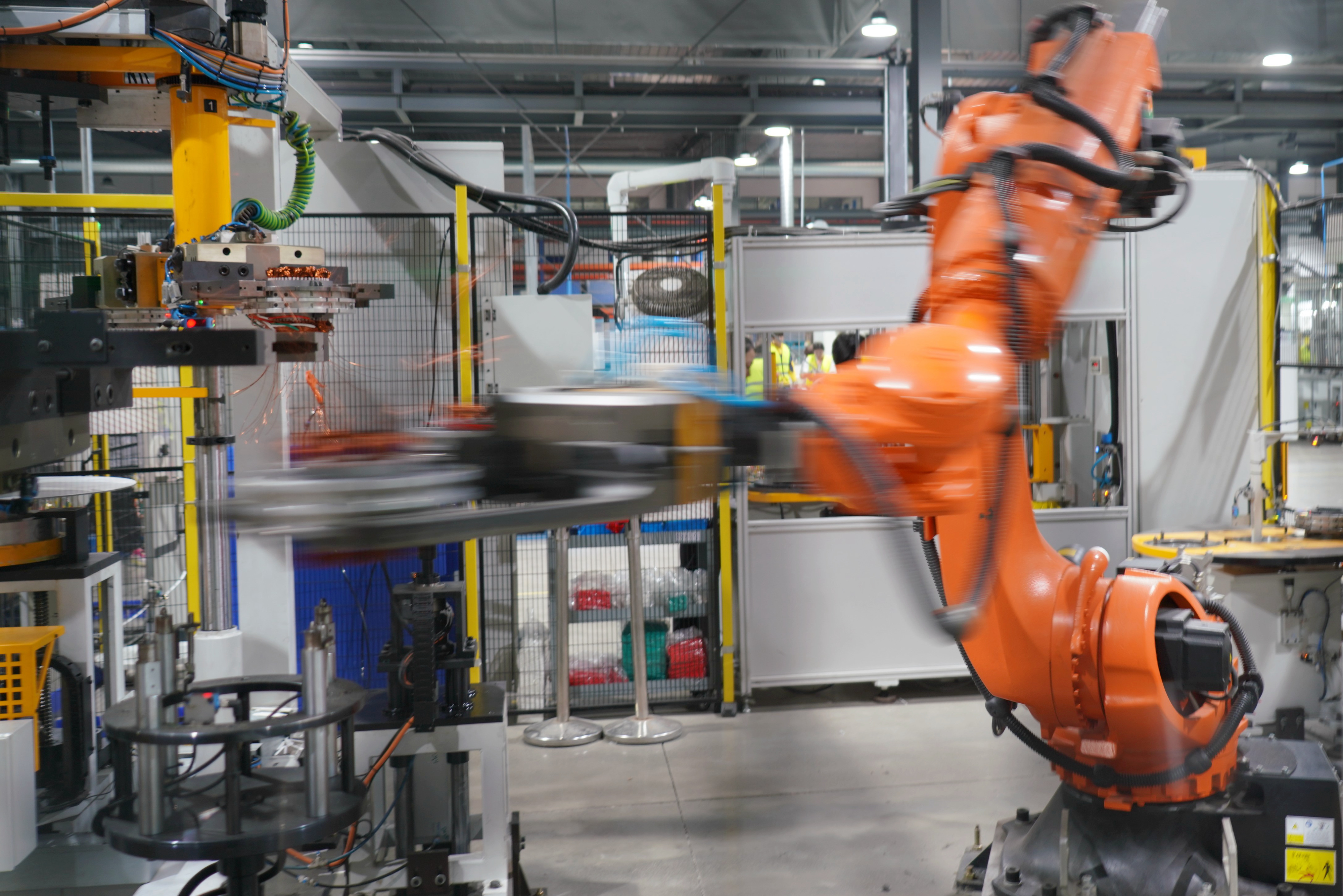 (10月17日,在山东双林新能源科技有限公司生产车间内,自动化机械臂正在作业。)
